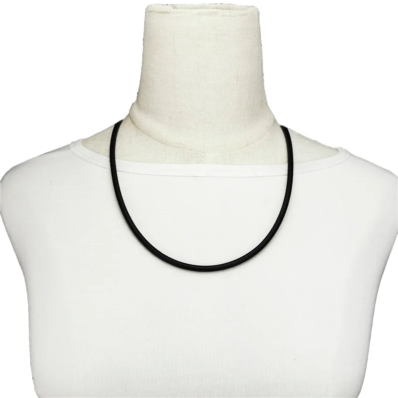 Minimal and modern, this necklace features a simple rubber-style rope design. Lightweight, flexible, and easy to wear, it’s perfect on its own or as a base for your favorite pendant. A no-fuss essential for everyday style.