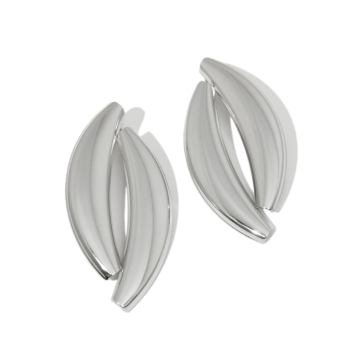 Featuring a unique layered design that mimics the fluid curves of seashells, these earrings combine a glossy ivory tone with gold accents for a modern, sculptural look.